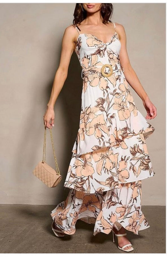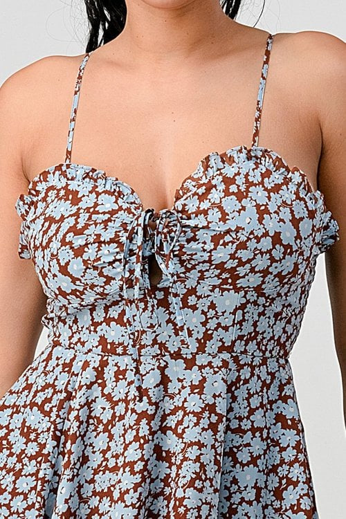 Floral Smocked Elastic Waistband Tiered Mini Skirt